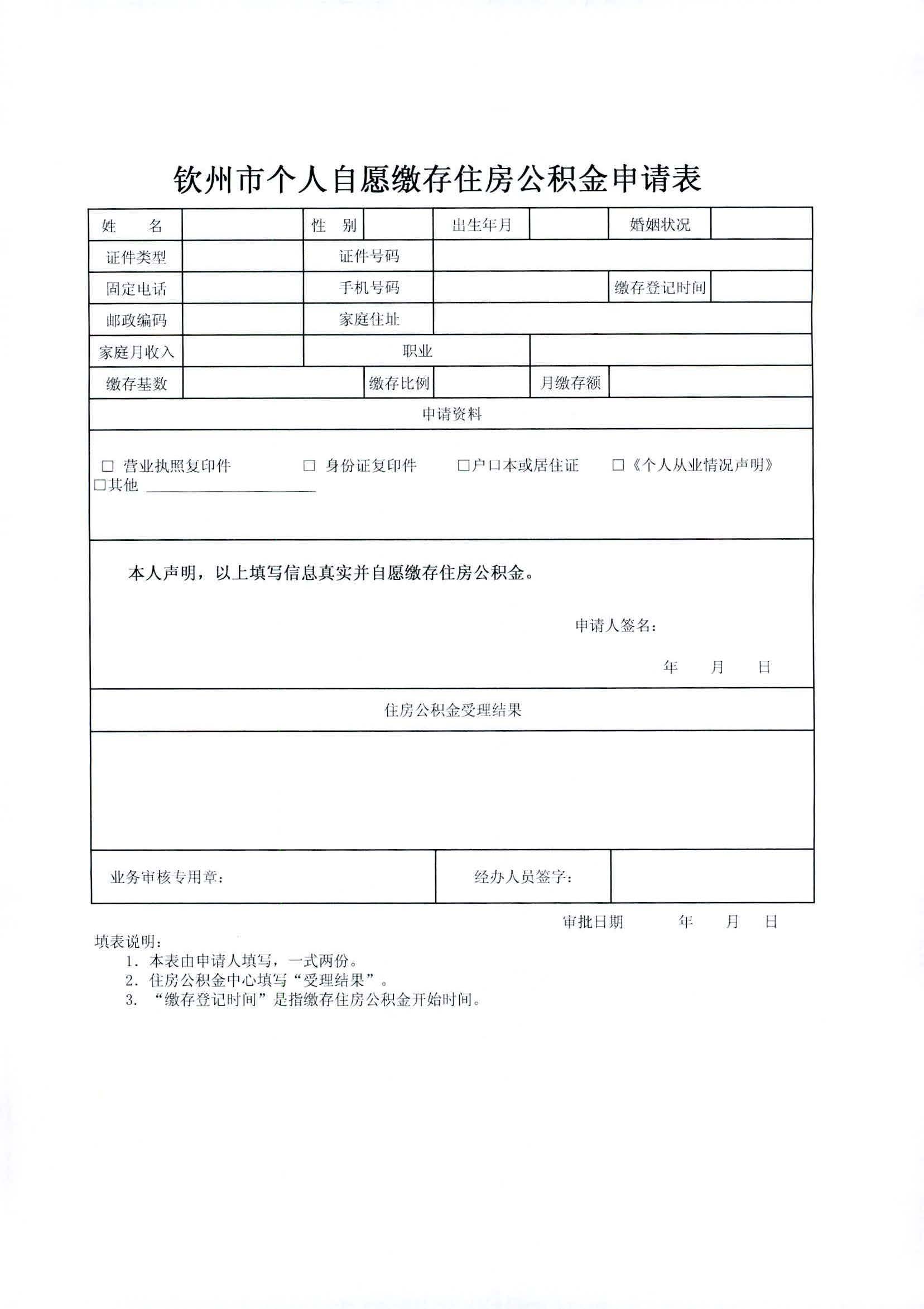 文件下载:钦州市个人自愿缴存住房公积金申请表