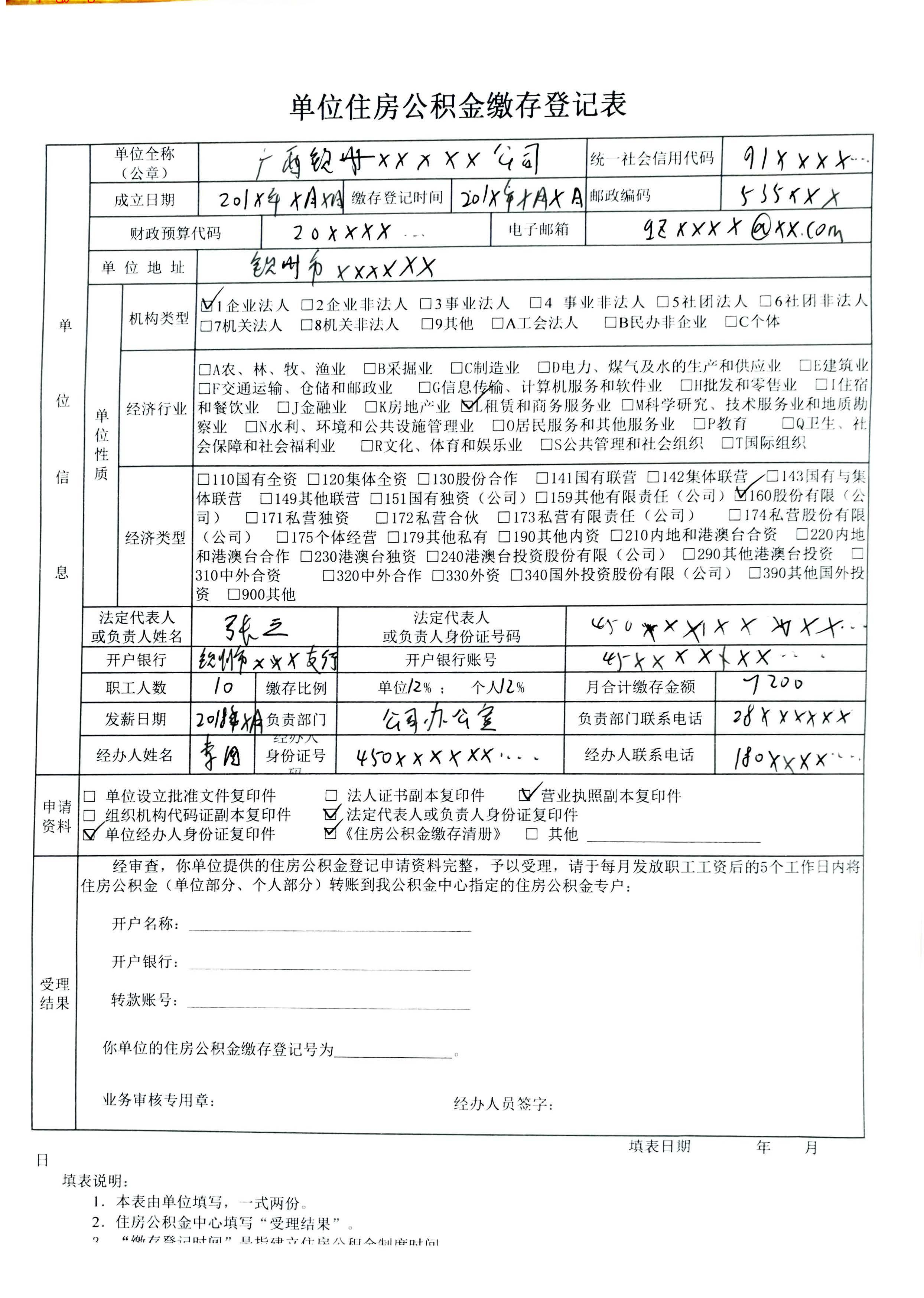单位住房公积金缴存登记表---填写范例
