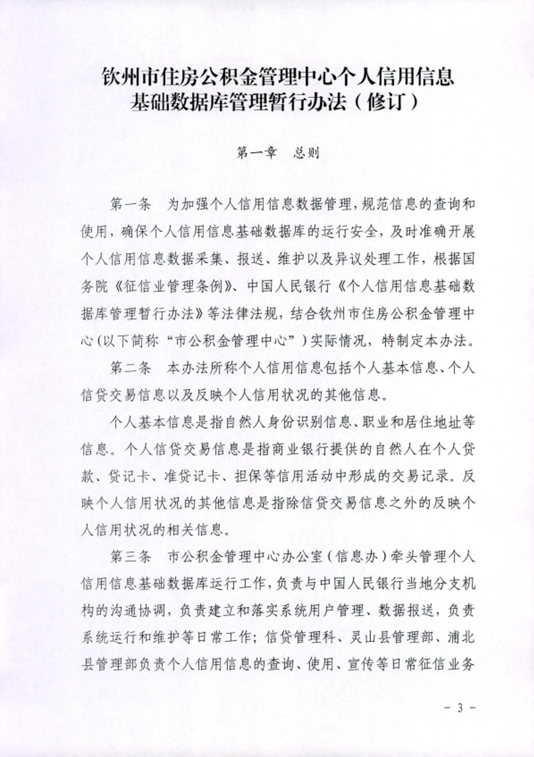 钦州市住房公积金管理中心关于印发《个人信用信息基础数据库管理暂行办法(修订)》的通知