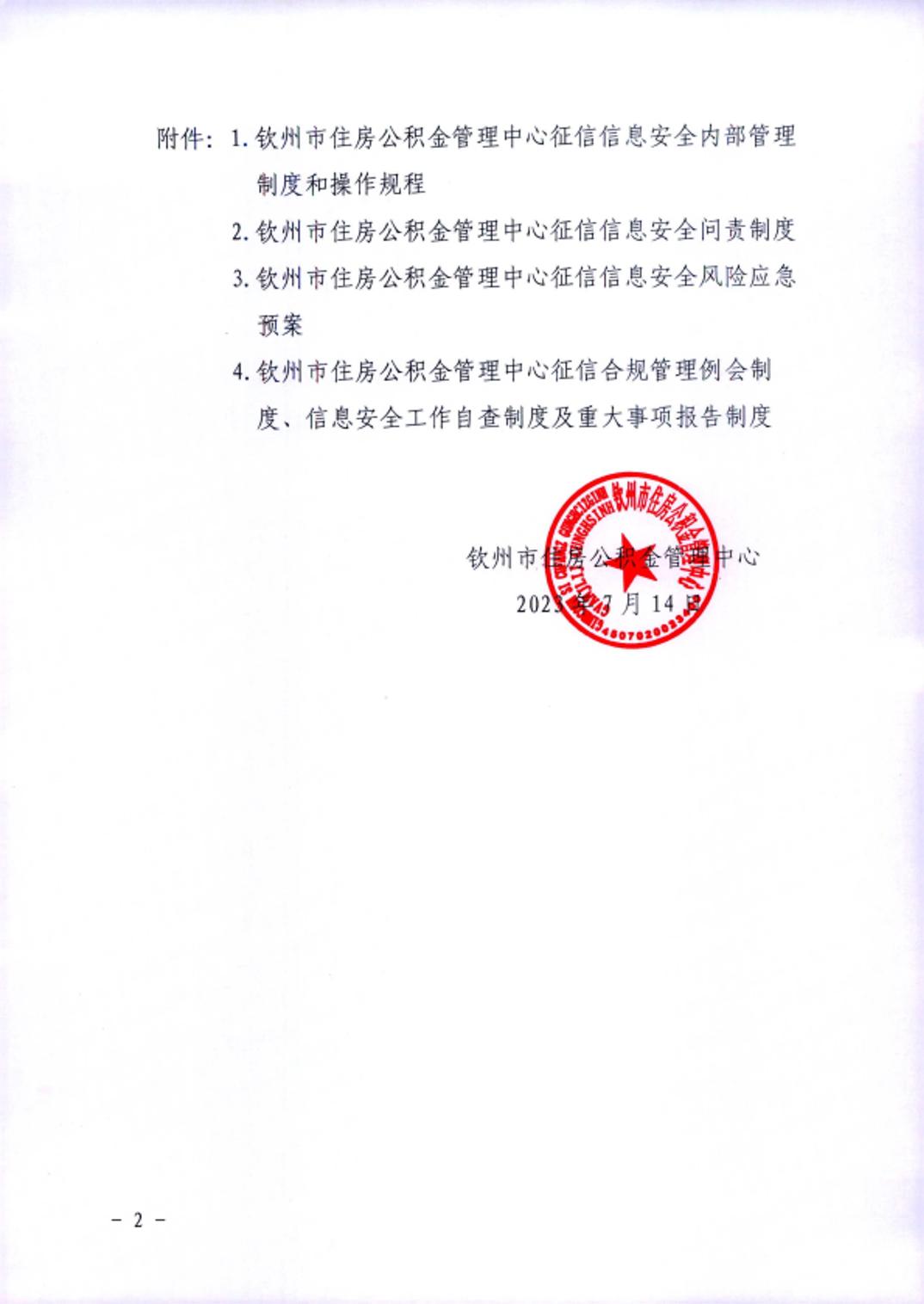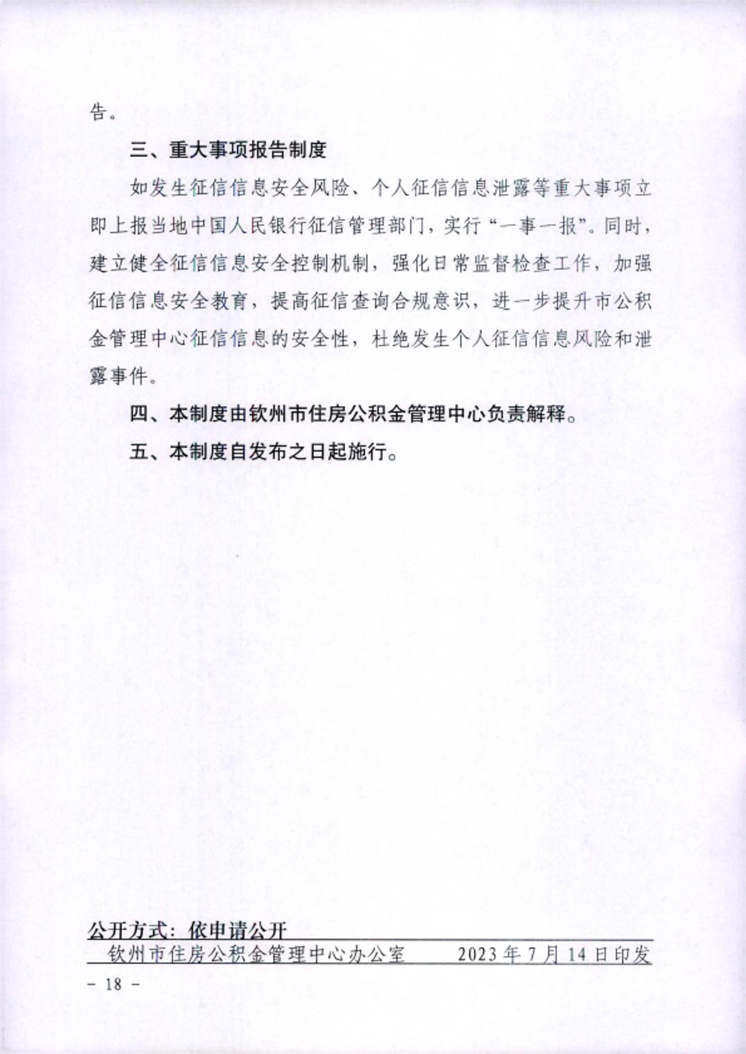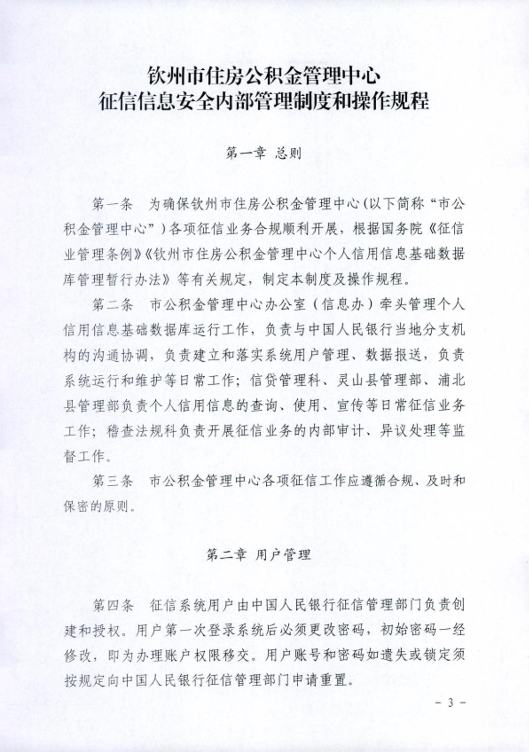 钦州市住房公积金管理中心关于印发《征信信息安全内部管理制度和操作规程》等四项征信安全管理制度的通知.pdf