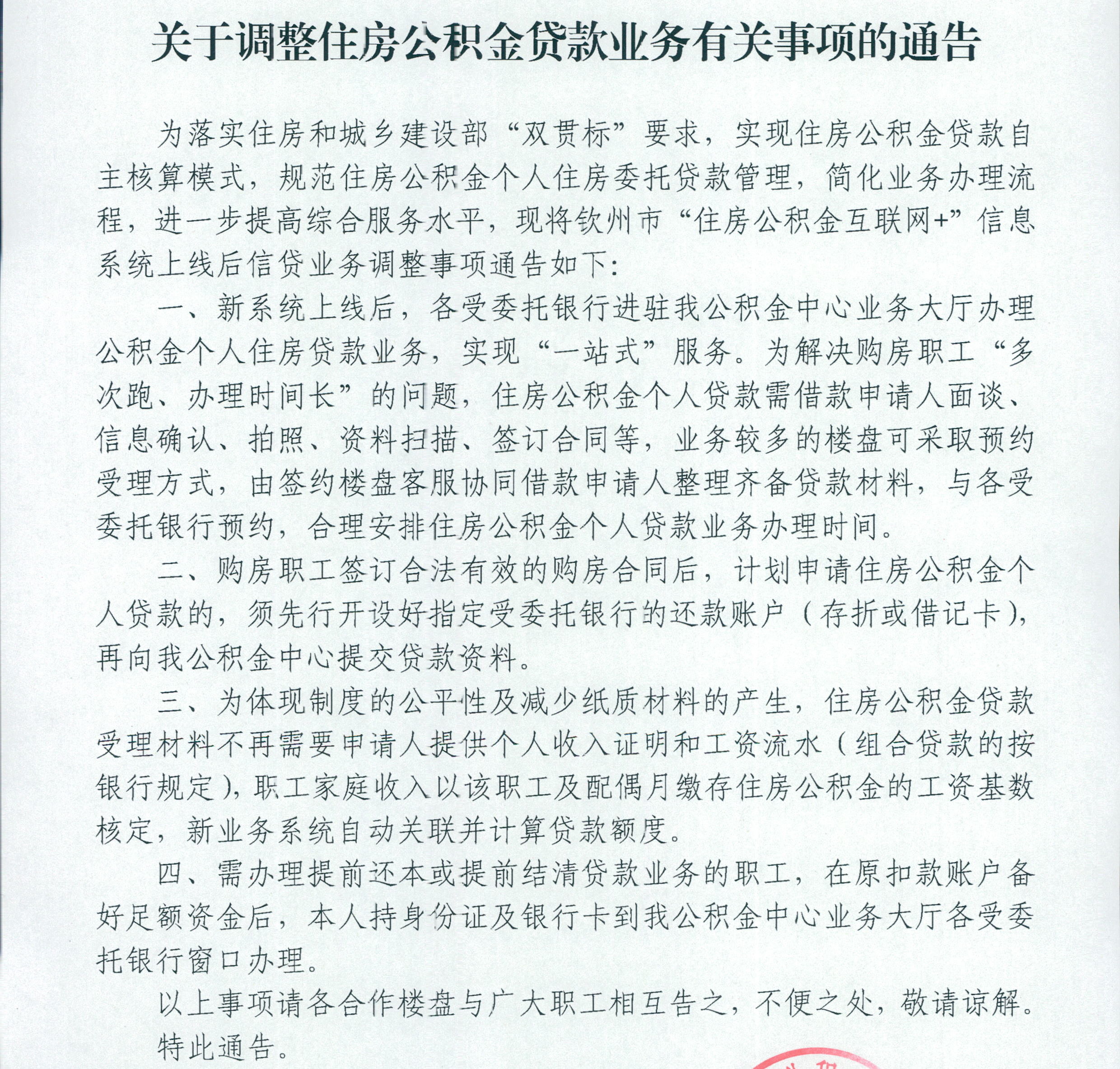 关于调整住房公积金贷款业务有关事项的通告
