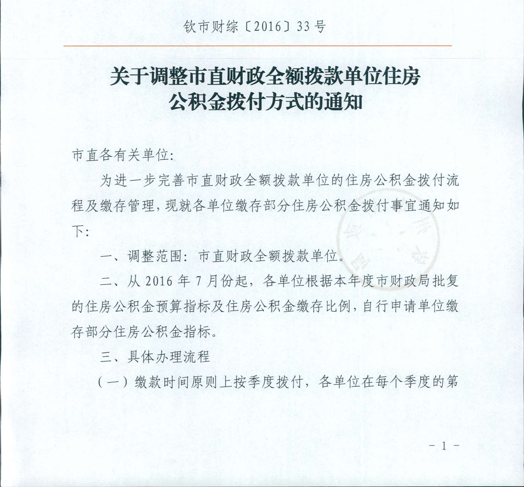 关于调整市直财政全额拨款单位住房公积金拨付方式的通知