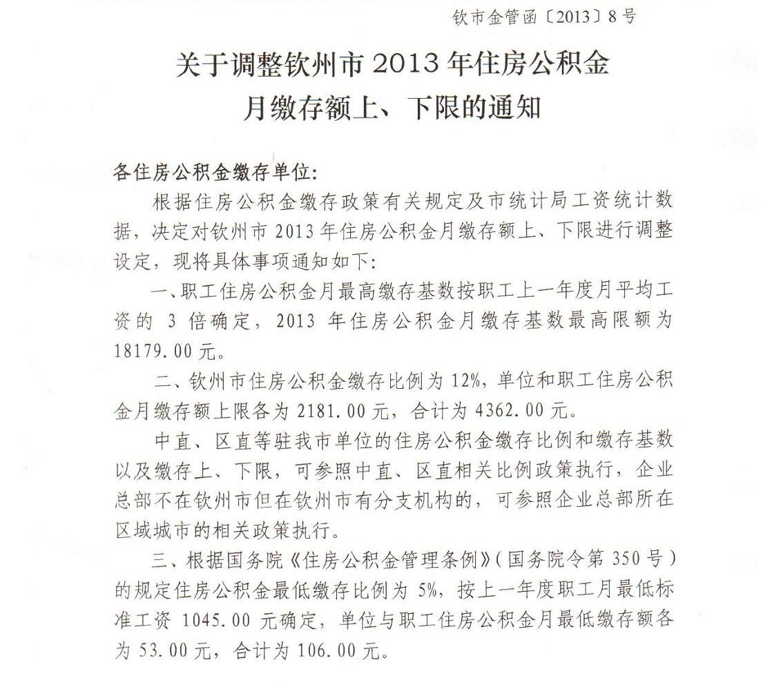 关于调整2013年住房公积金月缴存额上下限的通知.pdf