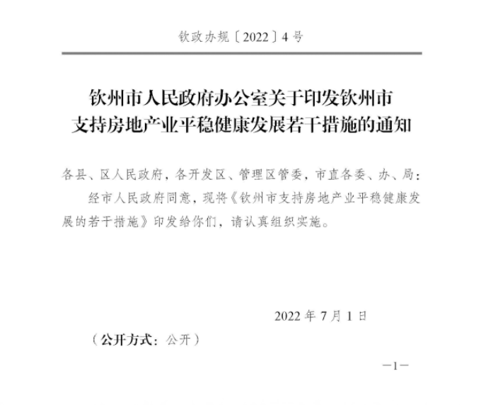 钦州市人民政府办公室关于支持房地产业平稳健康发展若干措施的通知