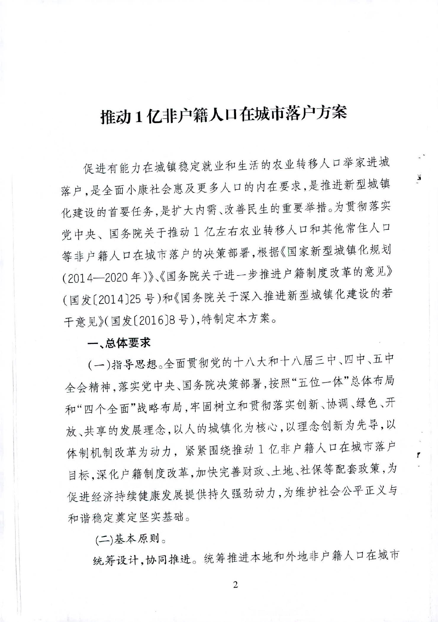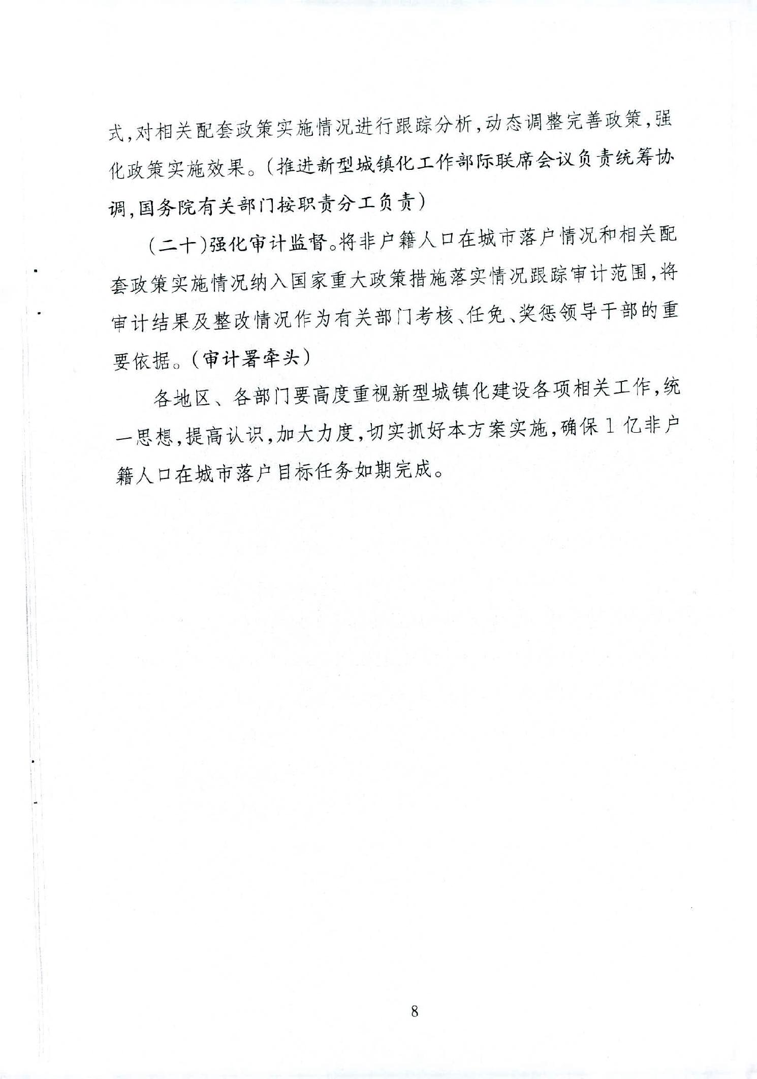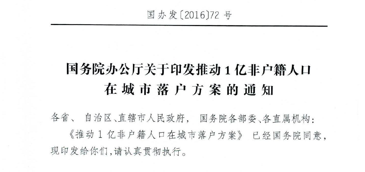 国务院办公厅关于印发推动一亿非户籍人口在城市落户方案的通知