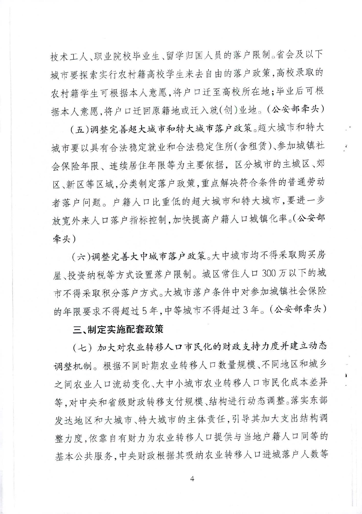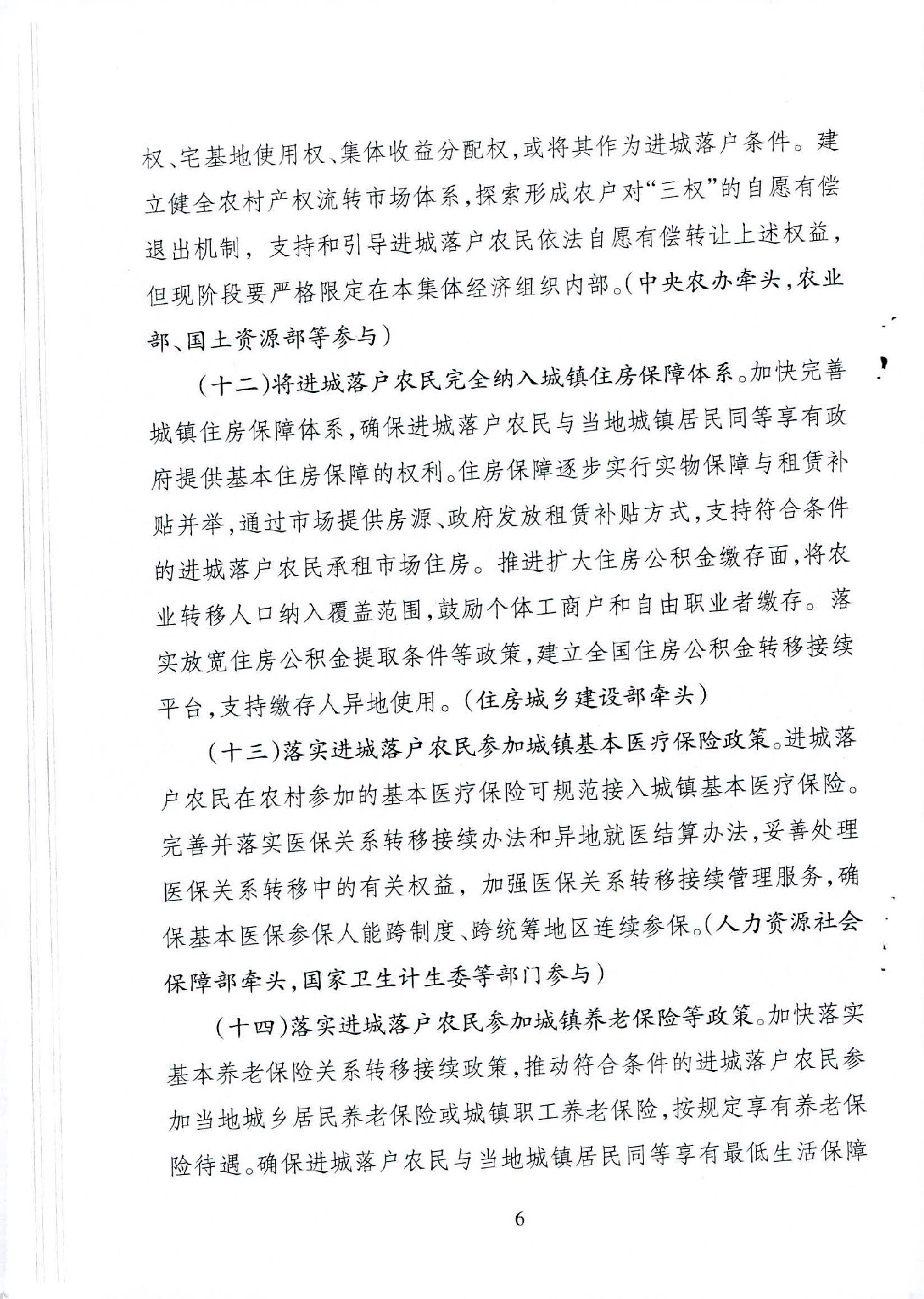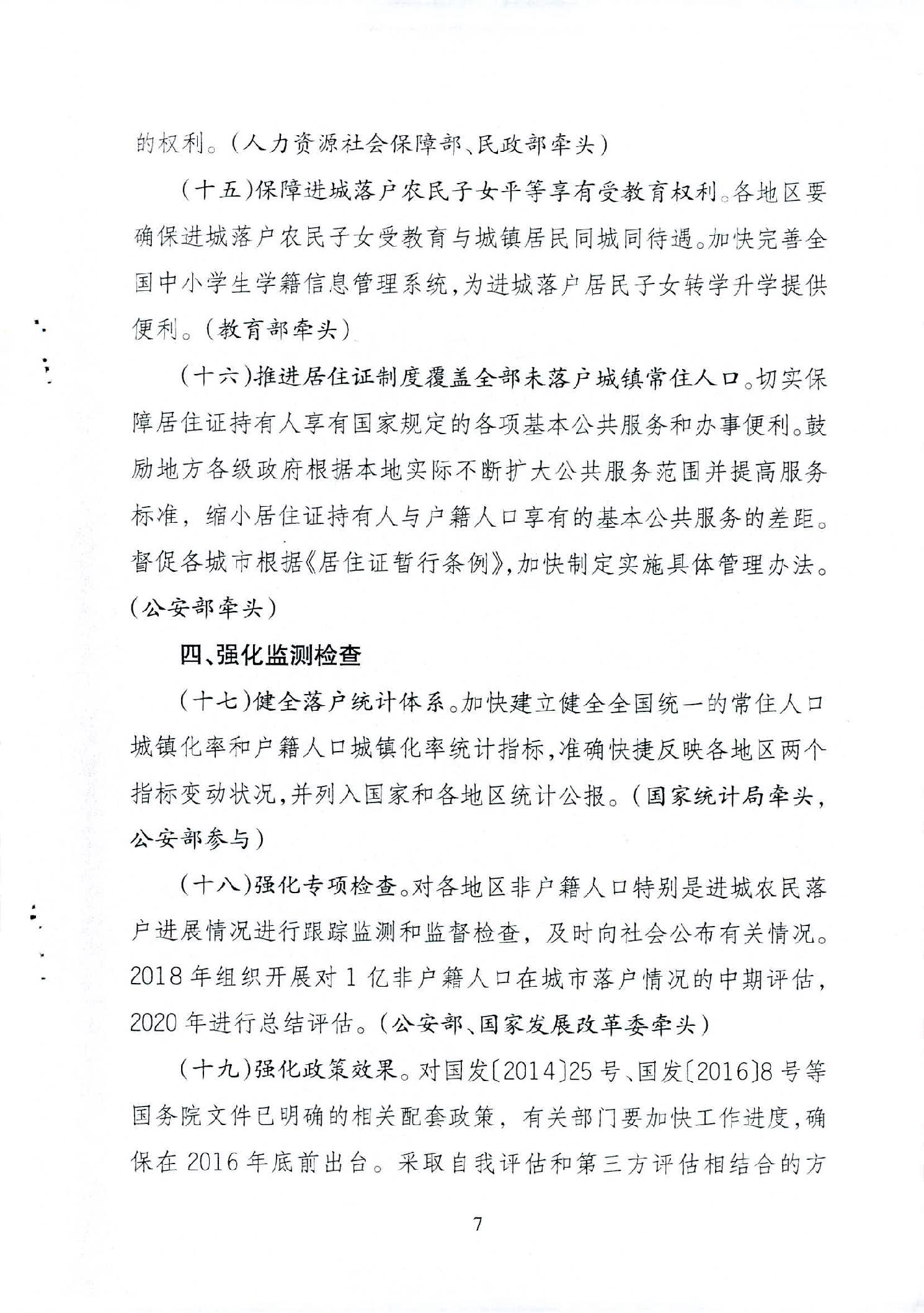 国务院办公厅关于印发推动一亿非户籍人口在城市落户方案的通知