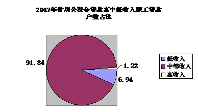 从缴存职工收入水平占比来看,中低收入职工(缴存基数低于2017年钦州市社会平均工资3倍的缴存职工)占全部实缴职工人数的98.81%,高收入占1.19%,说明住房公积金“控高保低”政策得到进一步落实,促进了住房公积金制度的公平性和合理性。