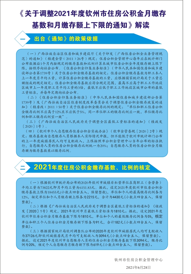 《关于调整2021年度钦州市住房公积金月缴存基数和月缴存额上下限的通知》解读图文版