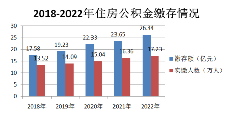 (一)制度覆盖面扩大,缴存额稳步增长。2022年新冠肺炎疫情给年度资金归集工作带来了一些困难,但通过积极落实阶段性缓缴政策、开展缴存业务全程线上办理等措施,有效应对了疫情带来的影响。《年报》披露,2022年全市新开户单位258家,新开户职工1.88万人,当年缴存额由2018年的17.58亿元增长至26.34亿元,五年累计增幅达49.83%。2022年末缴存总额195.61亿元,比上年末增长15.56%;缴存余额73.26亿元,同比增长14.60%。缴存额逐年递增,实现近五年来最好成绩。