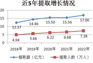 (一)住房公积金提取额稳步增长,有力支持缴存人住房消费。2022年,全市住房公积金提取人数7.38万人,同比增长10.48%。住房公积金提取金额17亿元,同比增长9.30%,提取金额占当年缴存额的64.55%。截至2022年底,全市住房公积金累计提取总额122.35亿元,比上年末增加16.14%。