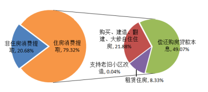 (二)住房消费提取占比将近八成,减轻职工住房消费负担。2022年,住房公积金提取金额中购建住房提取3.72亿元,占比21.88%;偿还住房贷款本息提取额8.34亿元,占比49.07%;租房提取金额1.42亿元,占比8.33%;支持老旧小区改造提取金额70.05万元,占比0.04%;非住房消费提取金额3.52亿元,占比20.68%。