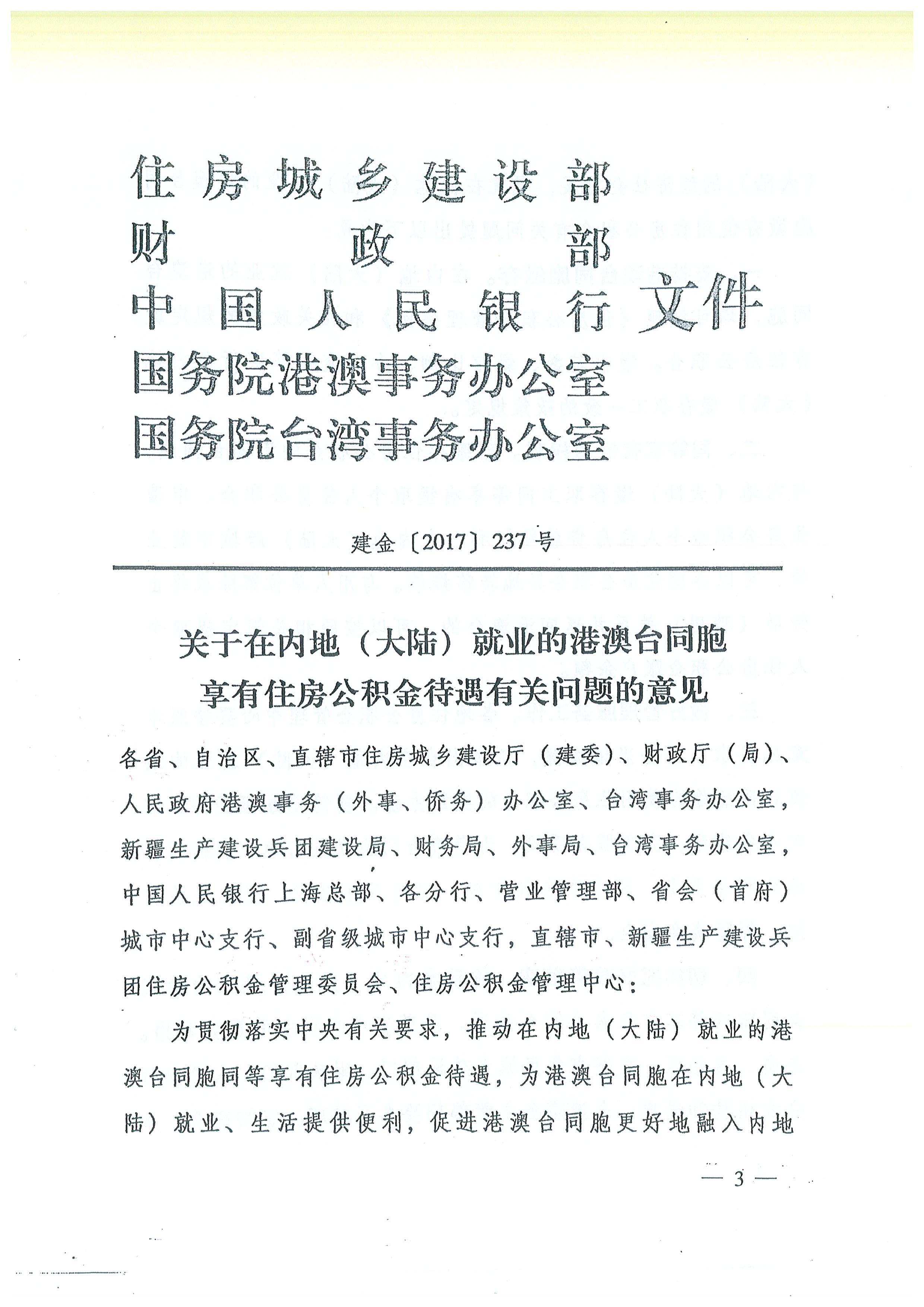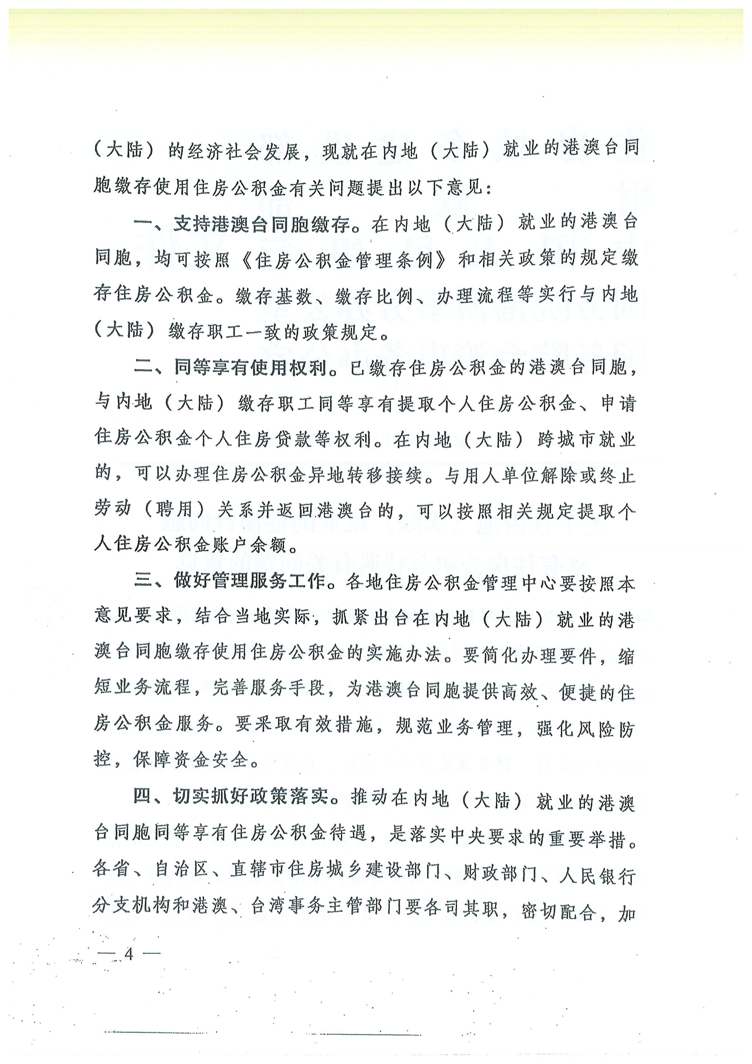 转发住房城乡建设部等五部门关于在内地(大陆)就业的港澳台同胞享有住房公积金待遇有关问题的意见的通知