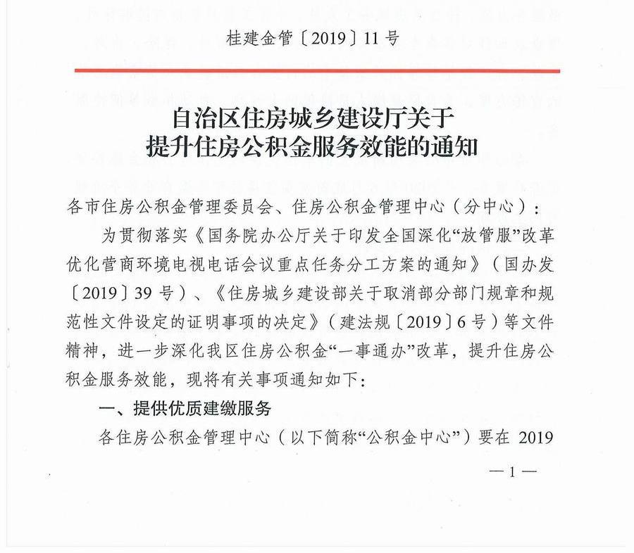 自治区住房城乡建设厅关于提升住房公积金服务效能的通知
