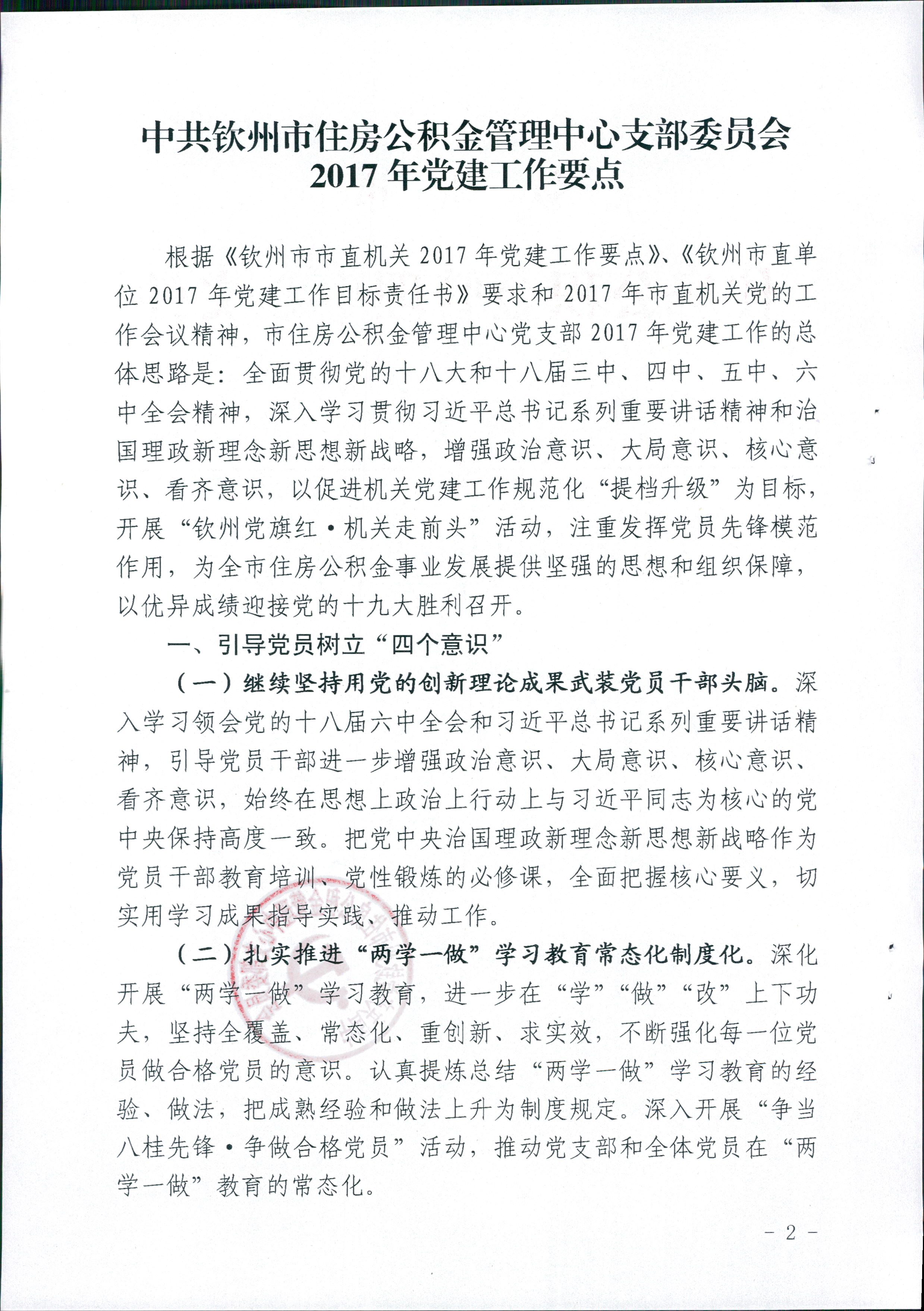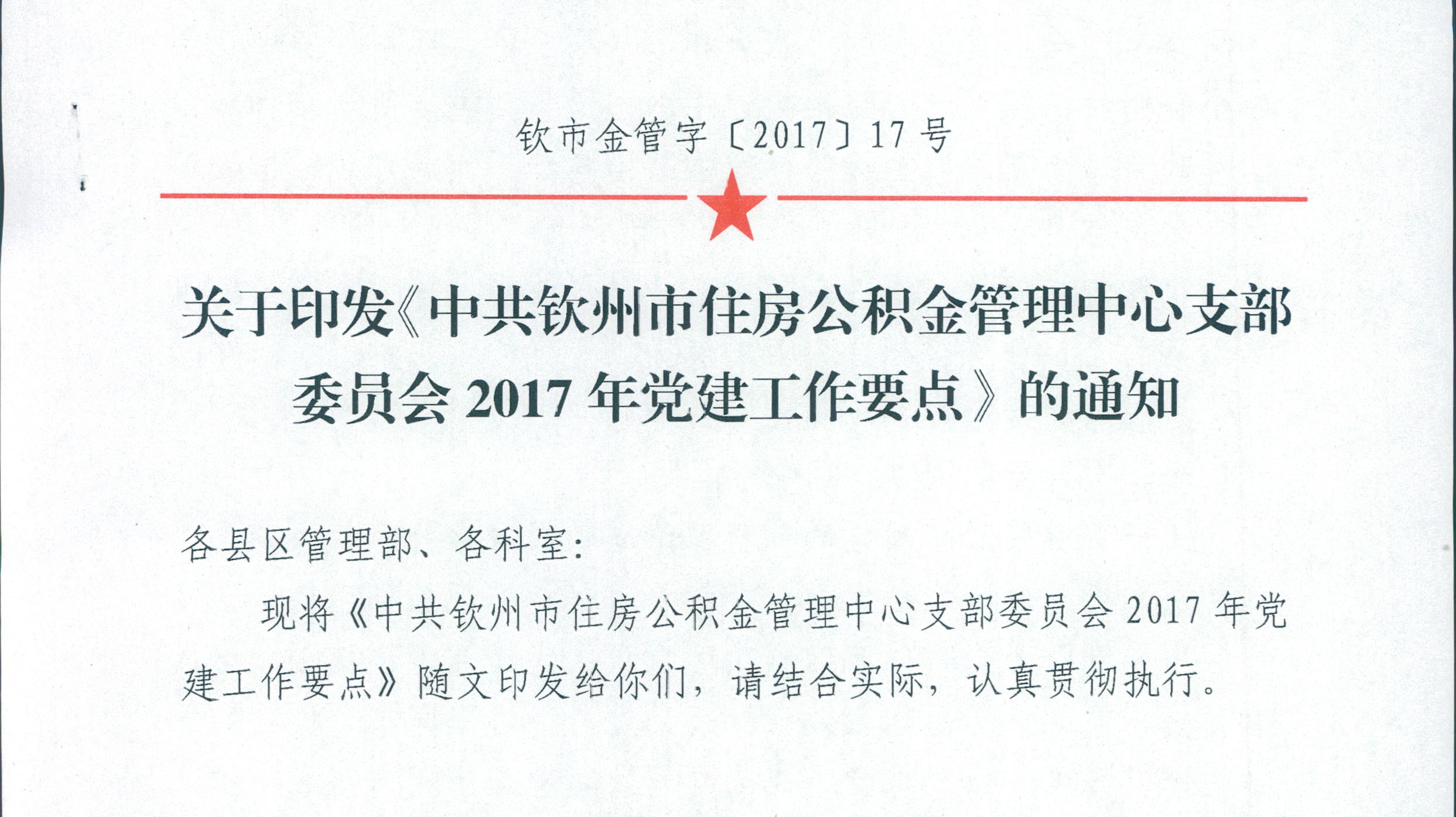关于印发《中共钦州市住房公积金管理中心支部委员会2017年党建工作要点》的通知