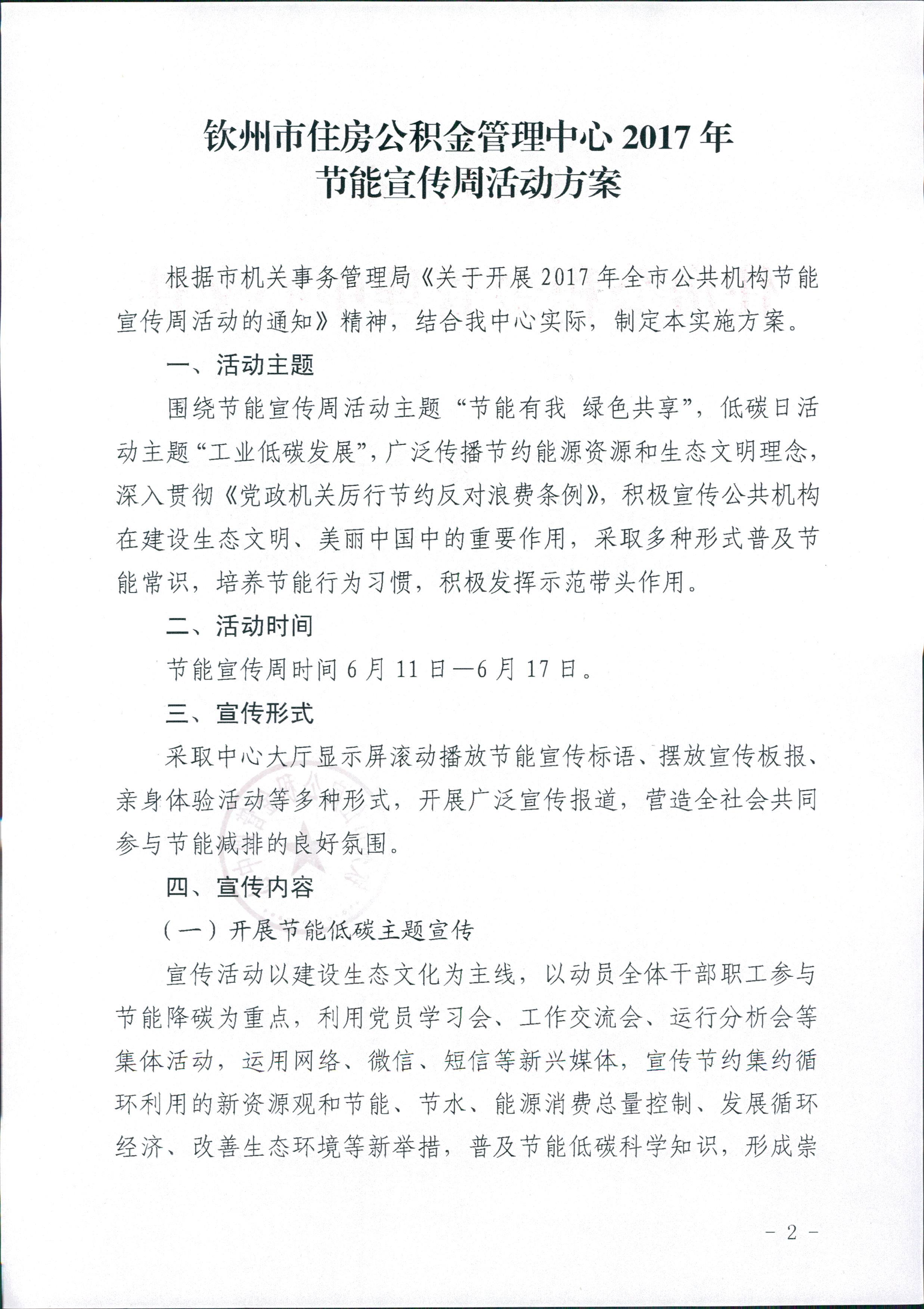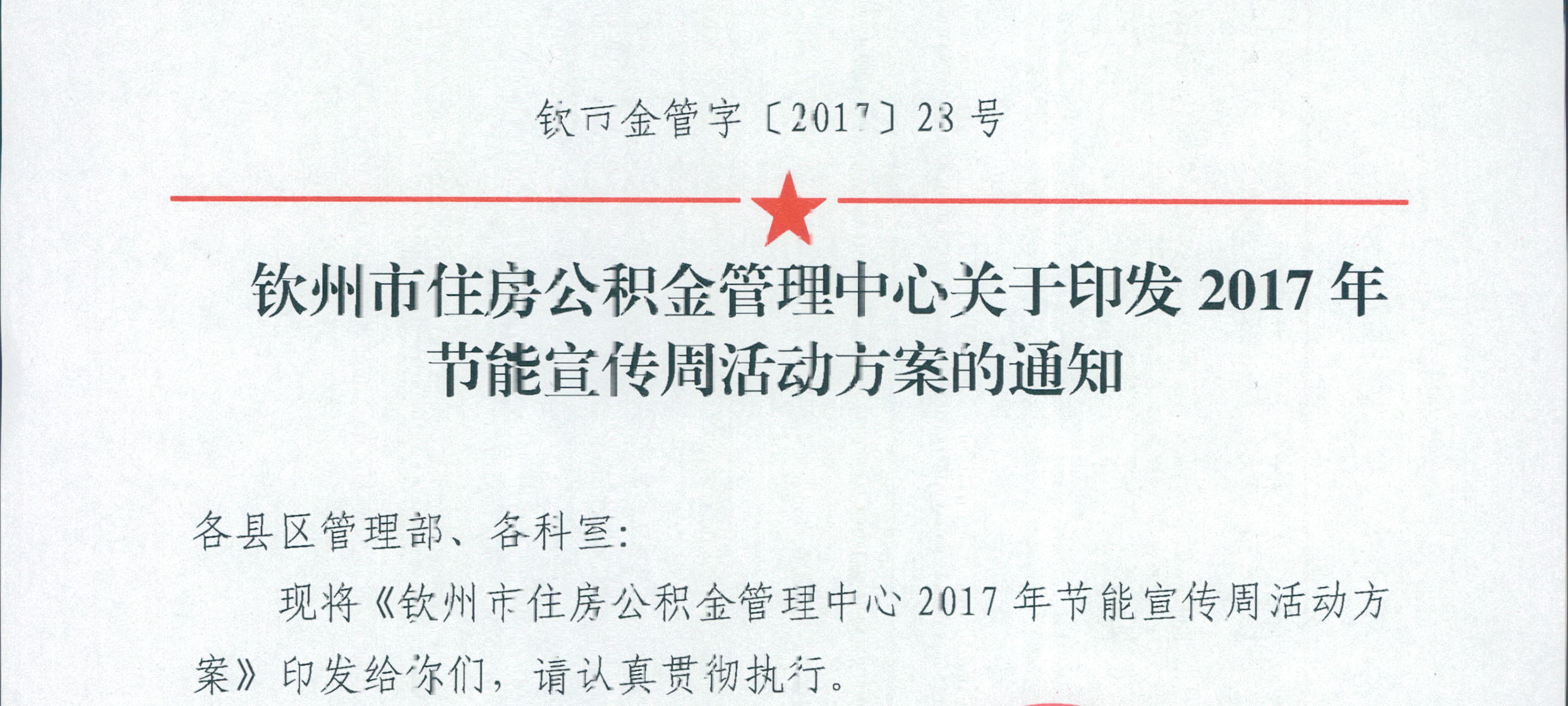 钦州市住房公积金管理中心关于印发2017年节能宣传周活动方案的通知