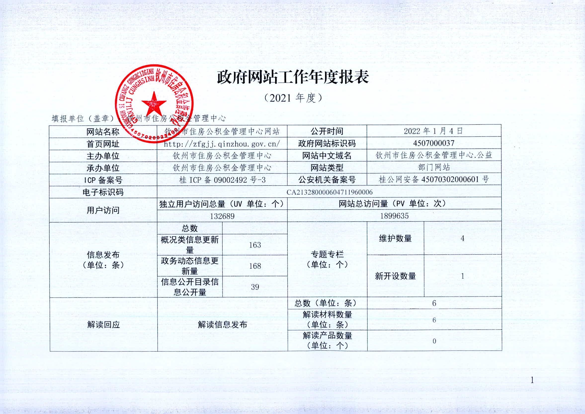广西钦州市住房公积金管理中心网站2021年政府网站工作年度报表