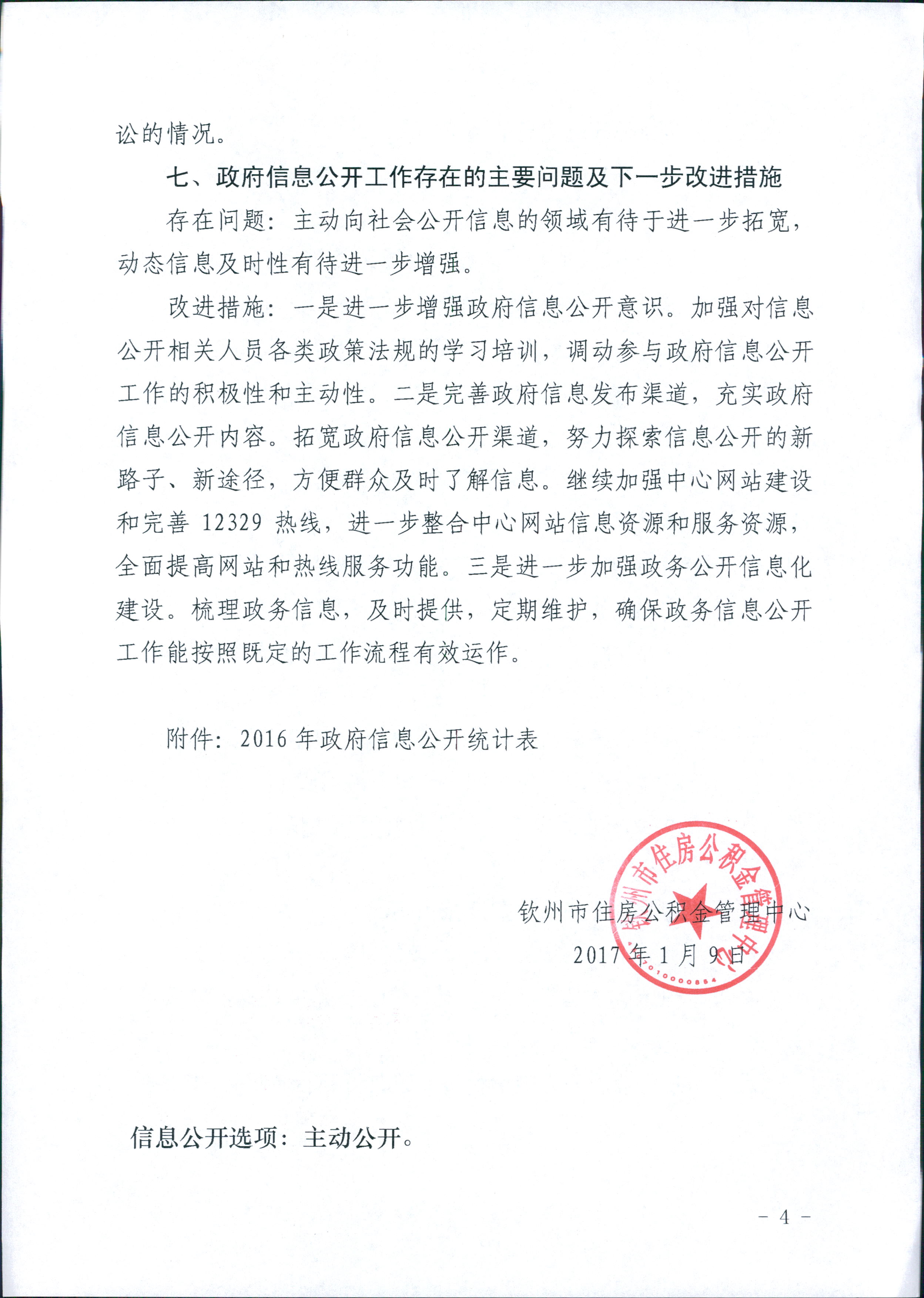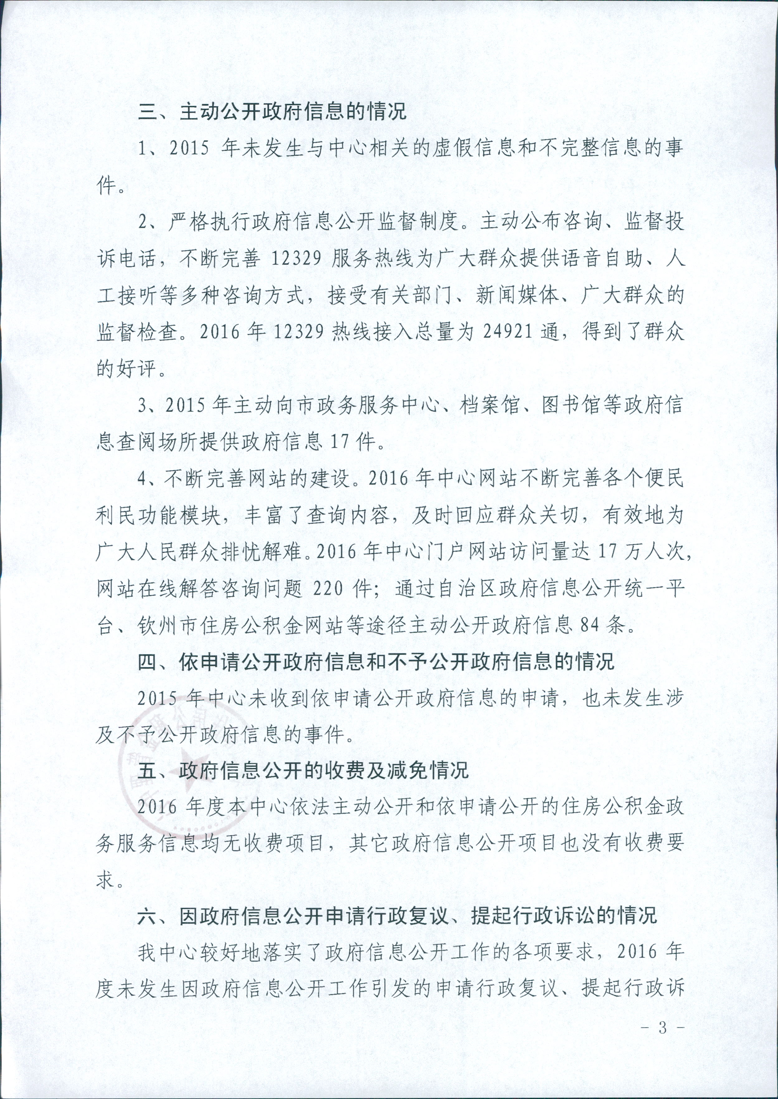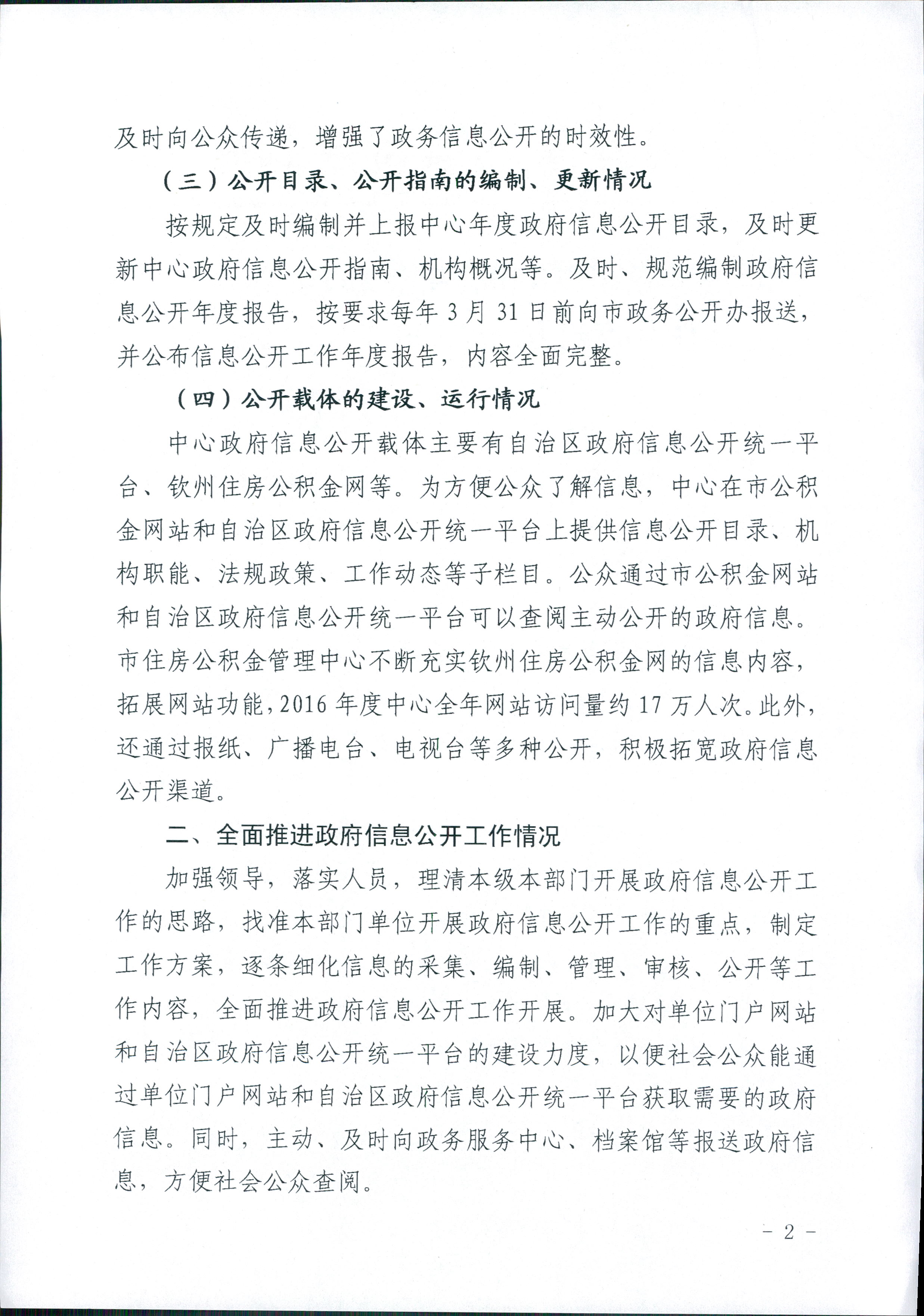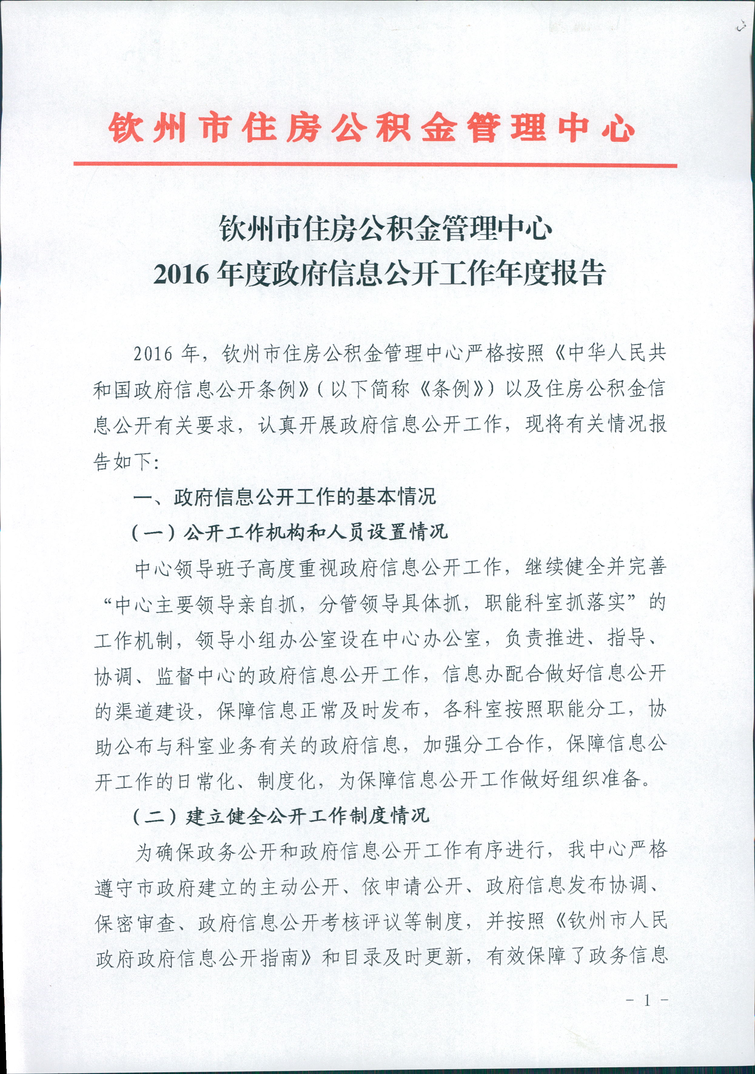钦州市住房公积金管理中心2016年政府信息公开工作年度报告