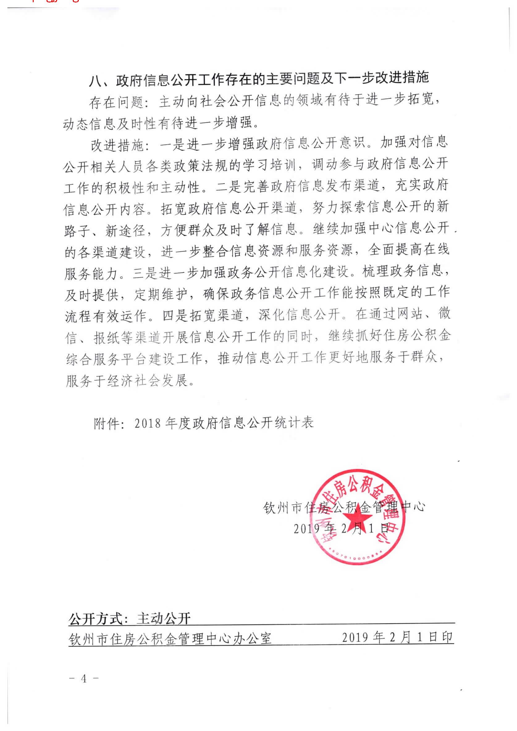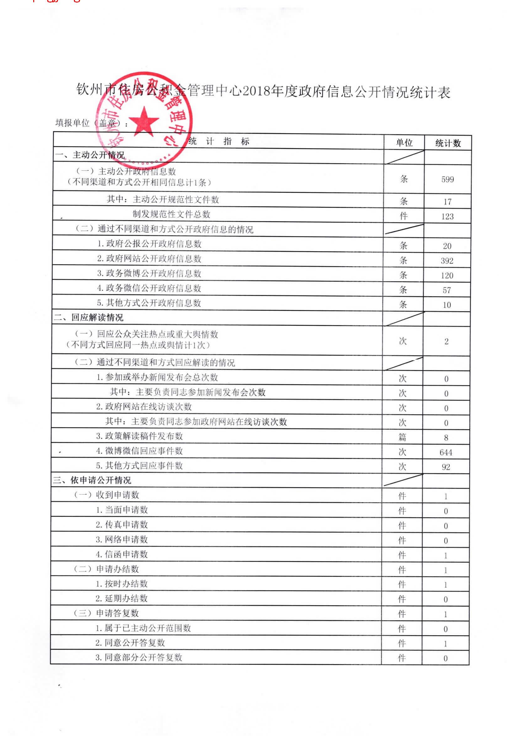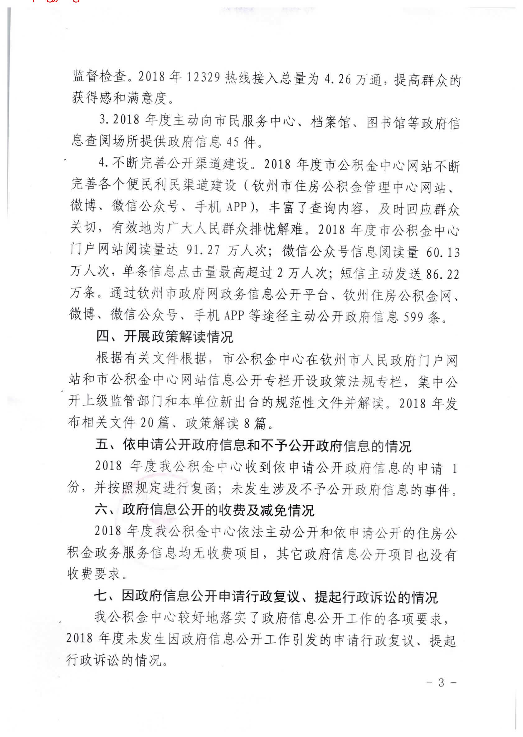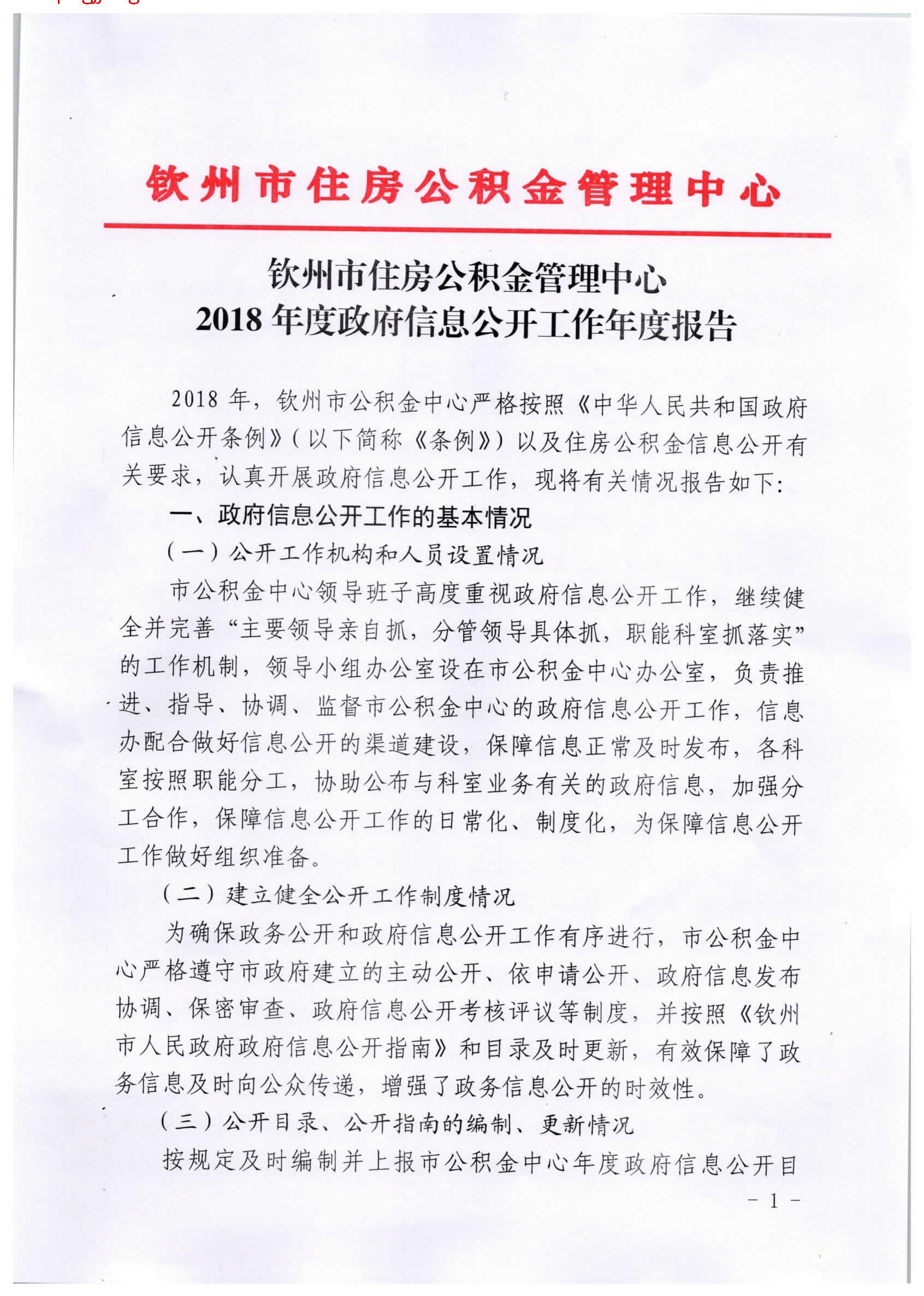 钦州市住房公积金管理中心2018年政府信息公开工作年度报告